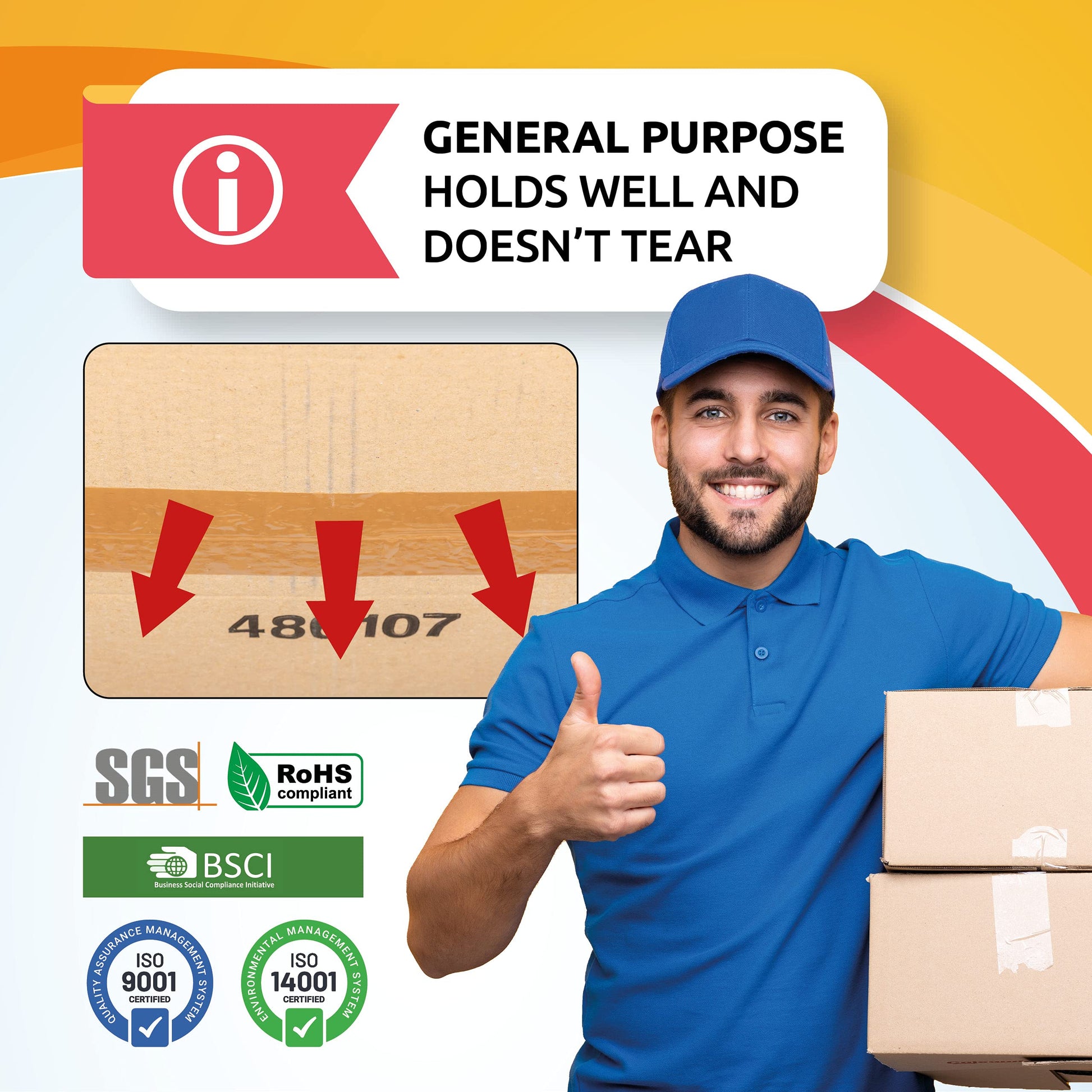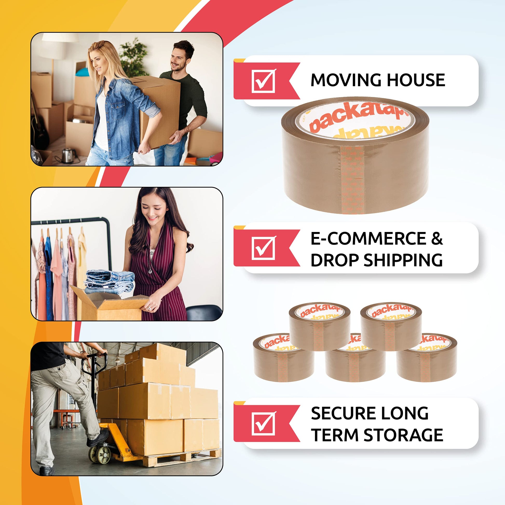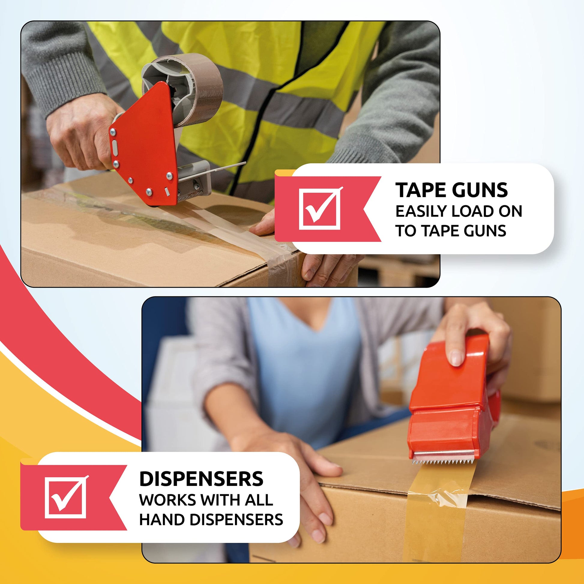 - 📦 Parcel Tape STICKY & DURABLE - Our tape sticks extremely well to cardboards and similar surfaces. And thanks to its UV and moisture resistance it ensures your packages are sealed well come sun or rain! For very delicate or heavy shipments you can use multiple layers for even more protection and that extra peace of mind.