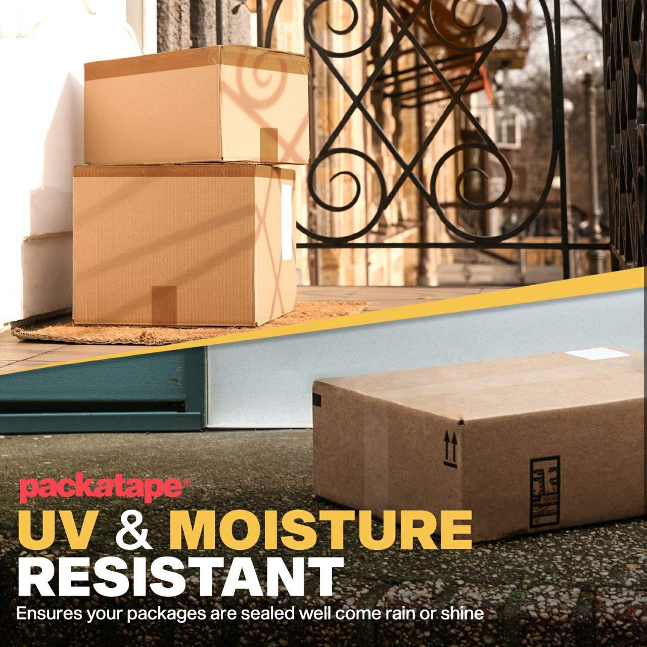 - Parcel tape sticky & Durable - Our tape sticks extremely well to cardboards and similar surfaces. And thanks to its UV and moisture resistance it ensures your packages are sealed well come sun or rain! For very delicate or heavy shipments you can use multiple layers for even more protection and that extra peace of mind.