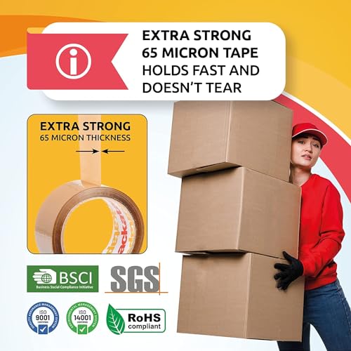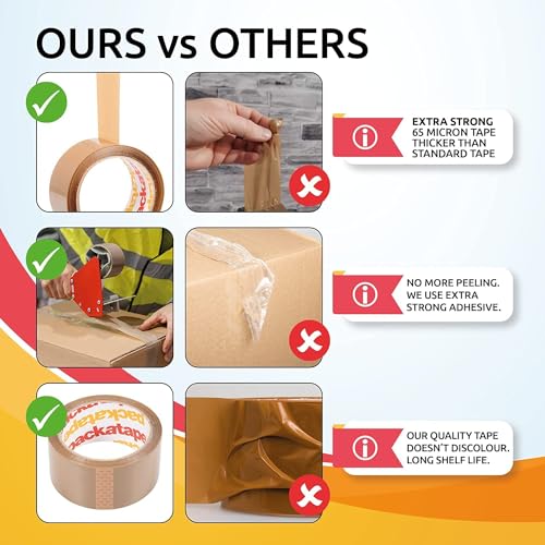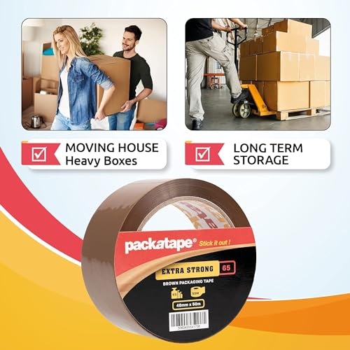 - Pack with Confidence: Enjoy the assurance of extra-strong packaging with Packatape! Our brown packing tape, 65 microns thick, sets a new standard in durability, providing unparalleled strength for all your parcel, packing, and storage needs.