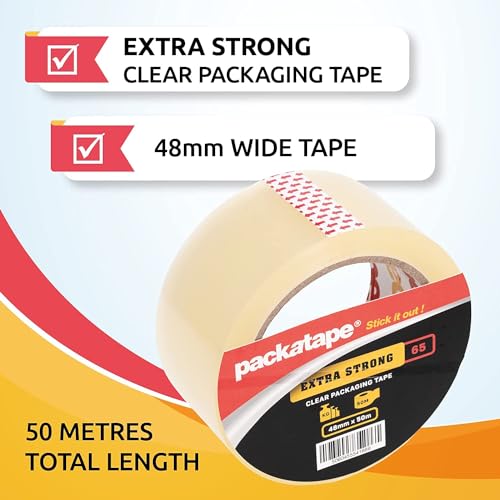- Versatile Powerhouse Tape: Unleash the power of Packatape's 48mm x 50m tape, with its robust 65-micron thickness, excelling in various applications, from sealing parcels to organizing and securing storage boxes.