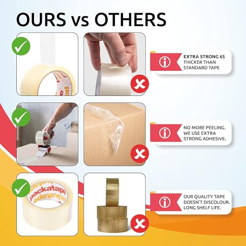 - Durable Shipping Assurance: Choose Packatape for a Durable Shipping Tape experience, thanks to its 65-micron thickness and strong adhesive. Stand confident against the challenges of shipping, storing, or moving, knowing you have a thicker and more reliable tape at your disposal.
