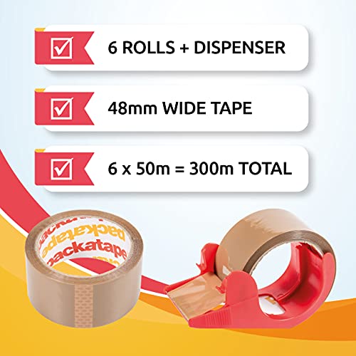 6 Rolls Packaging Tape + Dispenser Packatape®